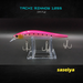 Introducing a minnow exclusively for big players with outstanding flight distance. Equipped with three 6.5 mm high density tungsten weights to move the center of gravity. Achieves a high level of stress-free flight distance and has the best attack range in its class. In addition, it has a wire-through structure and three hooks, so it is a design concept that will not miss the hung prey. Not only salt water, but also big ones in large places such as lakes and dam lakes are targeted. TACHI MINNOW was inspired by the old swordsman. With the original design of professional angler Seiya Narumi, we have found the optimum golden ratio in terms of both performance and appearance.